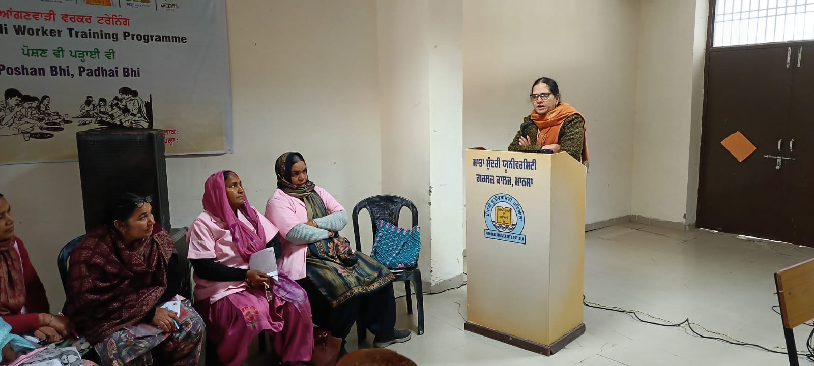 ਮਾਨਸਾ, 29 ਜਨਵਰੀ (ਸਾਰਾ ਯਹਾਂ/ਮੁੱਖ ਸੰਪਾਦਕ) : ਸਮਾਜਿਕ ਸੁਰੱਖਿਆ, ਇਸਤਰੀ ਤੇ ਬਾਲ ਵਿਕਾਸ ਵਿਭਾਗ ਪੰਜਾਬ ਦੇ ਹੁਕਮਾਂ ਅਨੁਸਾਰ ਅਤੇ ਡਿਪਟੀ ਕਮਿਸ਼ਨਰ ਸ਼੍ਰੀਮਤੀ ਨਵਜੋਤ ਕੌਰ ਦੇ ਨਿਰਦੇਸ਼ਾਂ ਤਹਿਤ ਜ਼ਿਲ੍ਹਾ ਪ੍ਰੋਗਰਾਮ ਅਫ਼ਸਰ ਮਾਨਸਾ ਸ੍ਰੀਮਤੀ ਖੁਸ਼ਵੀਰ ਕੌਰ ਅਤੇ ਬਾਲ ਵਿਕਾਸ ਪ੍ਰੋਜੈਕਟ ਅਫ਼ਸਰ ਮਾਨਸਾ ਸ੍ਰੀਮਤੀ ਹਰਜਿੰਦਰ ਕੌਰ ਦੀ ਅਗਵਾਈ ਹੇਠ ਪੋਸ਼ਣ ਵੀ, ਪੜ੍ਹਾਈ ਵੀ ਪ੍ਰੋਗਰਾਮ ਤਹਿਤ ਆਂਗਣਵਾੜੀ ਵਰਕਰਾਂ ਦੀ ਮਾਤਾ ਸੁੰਦਰੀ ਯੂਨੀਵਰਸਿਟੀ ਗਰਲਜ ਕਾਲਜ ਮਾਨਸਾ ਵਿੱਚ ਤਿੰਨ ਰੋਜ਼ਾ ਟਰੇਨਿੰਗ ਕਰਵਾਈ ਗਈ ਹੈ।