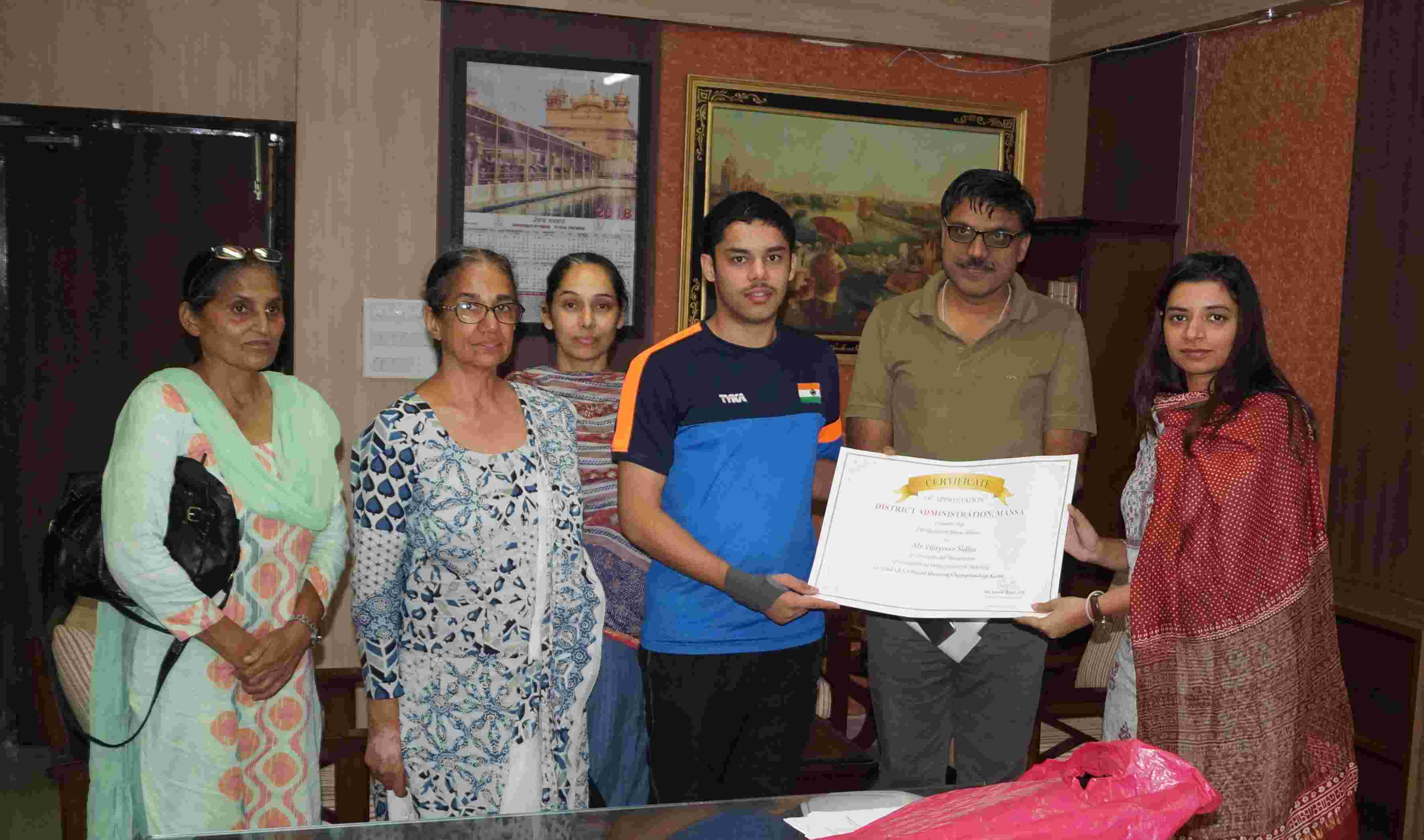 ਬੀਤੀ ਦੇਰ ਸ਼ਾਮ ਡਿਪਟੀ ਕਮਿਸ਼ਨਰ ਦਫ਼ਤਰ ਵਿੱਚ ਰੱਖੇ ਸੰਖੇਪ ਸਨਮਾਨ ਸਮਾਰੋਹ ਦੌਰਾਨ ਖਿਡਾਰੀਆਂ ਦੇ ਮਾਤਾ ਜੀ ਰਾਣੋ ਸਿੱਧੂ, ਦਾਦੀ ਜੀ ਸ਼੍ਰੀਮਤੀ ਸੁਰਿੰਦਰ ਕੌਰ ਸਿੱਧੂ, ਸ਼੍ਰੀਮਤੀ ਜਸਵੀਰ ਕੌਰ ਨੱਤ, ਸ਼੍ਰੀ ਗੁਰਲਾਭ ਸਿੰਘ ਮਾਹਲ, ਸ਼੍ਰੀ ਜਗਮੋਹਨ ਸਿੰਘ ਧਾਲੀਵਾਲ, ਕੋਚ ਸ਼੍ਰੀ ਦੀਦਾਰ ਸਿੰਘ, ਕੋਚ ਸ਼੍ਰੀ ਸੰਗਰਾਮਜੀਤ ਸਿੰਘ, ਸ਼੍ਰੀ ਬਲਜੀਤ ਸਿੰਘ ਖ਼ਿਆਲਾ ਅਤੇ ਸ਼੍ਰੀ ਪਰਮਿੰਦਰ ਸਿੰਘ ਮਾਨ ਮੌਜੂਦ ਰਹੇ।