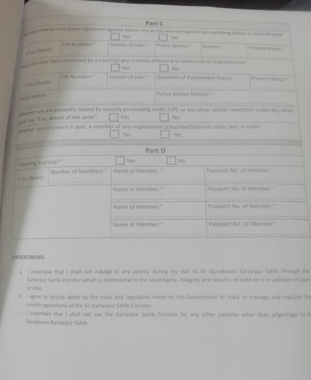 ਇਸ ਵੇਲੇ ਇਹ ਫਾਰਮ ਸਿਰਫ ਸ਼੍ਰੋਮਣੀ ਕਮੇਟੀ ਤੇ ਦਿੱਲੀ ਗੁਰਦੁਆਰਾ ਕਮੇਟੀ ਨੂੰ ਦਿੱਤੇ ਗਏ ਹਨ। ਫਾਰਮ ਵਿੱਚ ਸਿਰਫ ਪਾਸਪੋਰਟ ਦੀ ਜਾਣਕਾਰੀ ਦੇਣੀ ਹੋਏਗੀ ਵੀਜ਼ਾ ਲੈਣ ਦੀ ਲੋੜ ਨਹੀਂ। ਪੁਲਿਸ ਵੈਰੀਫਿਕੇਸ਼ਨ ਮਗਰੋਂ ਜਾਣ ਦਾ ਇਜਾਜ਼ਤ ਮਿਲੇਗੀ।