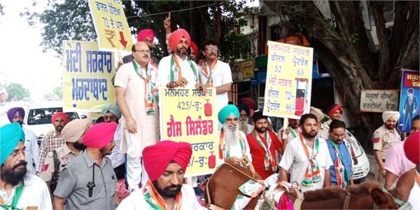 ਖੰਨਾ (ਸਾਰਾ ਯਹਾ ) : ਦੇਸ਼ ‘ਚ ਪੈਟਰੋਲ ਅਤੇ ਡੀਜ਼ਲ ਦੀਆਂ ਕੀਮਤਾਂ ‘ਚ ਹੋ ਰਹੇ ਲਗਾਤਾਰ ਵਾਧੇ ਦੇ ਵਿਰੋਧ ‘ਚ ਜਿੱਥੇ ਕਾਂਗਰਸ ਅਤੇ ਕੁੱਝ ਵਿਰੋਧੀ ਪਾਰਟੀਆਂ ਵੱਲੋਂ ਵਿਰੋਧ ਨੁਮਾਇਸ਼ ਕੀਤਾ ਜਾ ਰਹੀ ਹੈ, ਉੱਥੇ ਹੀ ਪੁਲਸ ਜ਼ਿਲਾ ਖੰਨਾ ਦੇ ਪਾਇਲ ਤੋਂ ਵਿਧਾਇਕ ਲਖਵੀਰ ਸਿੰਘ ਲੱਖਾ ਦੀ ਪ੍ਰਧਾਨਗੀ ‘ਚ ਅਨੋਖੇ ਤਰੀਕੇ ਨਾਲ ‘ਘੋੜਾ ਗੱਡੀ’ ‘ਤੇ ਰੋਸ ਮਾਰਚ ਕੱਢ ਕੇ ਵਿਰੋਧ ਜਤਾਇਆ ਗਿਆ । ਜ਼ਿਕਰਯੋਗ ਹੈ ਕਿ ਅੱਜ ਦੇਸ਼ ‘ਚ ਰੋਜ਼ਾਨਾ ਪੈਟਰੋਲ ਅਤੇ ਡੀਜ਼ਲ ਦੀਆਂ ਕੀਮਤਾਂ ‘ਚ ਹੋ ਰਹੇ ਵਾਧੇ ਦੇ ਵਿਰੋਧ ‘ਚ ਕਾਂਗਰਸ ਵਲੋਂ ‘ਭਾਰਤ ਬੰਦ’ ਦਾ ਐਲਾਨ ਕੀਤਾ ਗਿਆ ਸੀ ਅਤੇ ਇਸ ਨੂੰ ਲੈ ਕੇ ਦੇਸ਼ ਭਰ ‘ਚ ਵਿਰੋਧ ਨੁਮਾਇਸ਼ ਕਰ ਇਸ ਬੰਦ ਨੂੰ ਸਫਲ ਬਣਾਉਣ ਦੀਆਂ ਕੋਸ਼ਿਸ਼ਾਂ ਵੀ ਕੀਤੀਆਂ ਜਾ ਰਹੀਆਂ ਹਨ