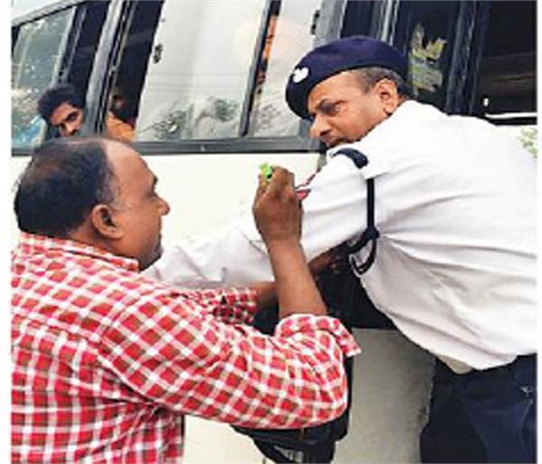 ਦੱਸਣਯੋਗ ਹੈ ਕਿ ਟ੍ਰੈਫਿਕ ਪੁਲਸ ਨੇ ਬੱਸ ਸਟੈਂਡ ਫਲਾਈਓਵਰ ਦੇ ਹੇਠਾਂ ਬੱਸ ਡਰਾਈਵਰਾਂ ਵੱਲੋਂ ਗਲਤ ਤਰੀਕੇ ਨਾਲ ਸਵਾਰੀਆਂ ਬੱਸਾਂ ‘ਚ ਬਿਠਾਉਣ ਤੋਂ ਰੋਕਣ ਲਈ ਨਾਕਾ ਲਗਾਇਆ ਸੀ। ਐੱਸ. ਆਈ. ਜਗਦੀਸ਼ ਪ੍ਰਸਾਦ ਨੇ ਦੱਸਿਆ ਕਿ ਉਹ ਆਪਣੀ ਟੀਮ ਦੇ ਨਾਲ ਉਕਤ ਸਥਾਨ ‘ਤੇ ਜਦੋਂ ਨਾਕੇ ‘ਤੇ ਸਨ ਤਾਂ ਉਨ੍ਹਾਂ ਇਕ ਨਿੱਜੀ ਕੰਪਨੀ ਦੀ ਬੱਸ ਦੇ ਕੰਡਕਟਰ ਨੂੰ ਸਵਾਰੀਆਂ ਚੜ੍ਹਾਉਣ ਤੋਂ ਰੋਕਿਆ ਤਾਂ ਉਹ ਟ੍ਰੈਫਿਕ ਪੁਲਸ ਮੁਲਾਜ਼ਮ ਨਾਲ ਉਲਝ ਗਿਆ। ਬੱਸ ਰੁਕਵਾਉਣ ਲਈ ਜਦੋਂ ਪੁਲਸ ਮੁਲਾਜ਼ਮ ਨੇ ਬੱਸ ‘ਚ ਚੜ੍ਹ ਕੇ ਬੱਸ ਨੂੰ ਰੋਕਣ ਦੀ ਕੋਸ਼ਿਸ਼ ਕੀਤੀ ਤਾਂ ਡਰਾਈਵਰ ਬੱਸ ਨੂੰ ਭਜਾਉਂਦੇ ਹੋਏ ਉਸ ਨੂੰ ਖਾਲਸਾ ਕਾਲਜ ਤੱਕ ਲੈ ਗਿਆ। ਇਸ ਤੋਂ ਬਾਅਦ ਉਨ੍ਹਾਂ ਨੇ ਮੌਕੇ ‘ਤੇ ਜਾ ਕੇ ਬੱਸ ਡਰਾਈਵਰ ਸੁਖਵਿੰਦਰ ਨੂੰ ਬੱਸ ਦੇ ਪੇਪਰ ਚੈੱਕ ਕਰਵਾਉਣ ਲਈ ਕਿਹਾ ਤਾਂ ਉਸ ਦੇ ਕੋਲ ਨਾ ਤਾਂ ਲਾਇਸੈਂਸ ਸੀ ਅਤੇ ਨਾ ਆਰ. ਸੀ. ਅਤੇ ਨਾ ਹੀ ਰੂਟ ਪਰਮਿਟ। ਇਸ ਦੇ ਕਾਰਨ ਬੱਸ ਨੂੰ ਇੰਪਾਊਂਡ ਕੀਤਾ ਗਿਆ।