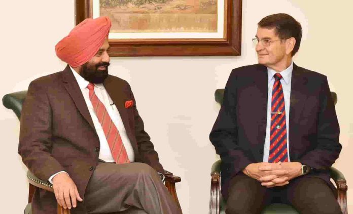 ਚੰਡੀਗੜ੍ਹ,(ਸਾਰਾ ਯਹਾ) 12 ਦਸੰਬਰ: ਪੰਜਾਬ ਵਿੱਚ ਧਰਤੀ ਹੇਠਲੇ ਪਾਣੀ ਦੇ ਡਿੱਗ ਰਹੇ ਪੱਧਰ ਨੂੰ ਠੱਲ੍ਹ ਪਾਉਣ ਲਈ ਯਤਨਸ਼ੀਲ ਸੂਬੇ ਦੇ ਜਲ ਸਰੋਤ ਮੰਤਰੀ ਸ੍ਰੀ ਸੁਖਬਿੰਦਰ ਸਿੰਘ ਸਰਕਾਰੀਆ ਨੇ ਇਥੇ ਪੰਜਾਬ ਭਵਨ ਵਿੱਚ ਸਿੰਜਾਈ ਤੇ ਡਰੇਨੇਜ ਬਾਰੇ ਕੌਮਾਂਤਰੀ ਕਮਿਸ਼ਨ ਦੇ ਮੁਖੀ ਇੰਜਨੀਅਰ ਫੀਲਿਕਸ ਬ੍ਰਿਟਜ਼ ਰੀਏਂਡਰਜ਼ ਨਾਲ ਵਿਚਾਰ ਚਰਚਾ ਕੀਤੀ। ਸ੍ਰੀ ਸਰਕਾਰੀਆ ਨੇ ਫੀਲਿਕਸ ਨੂੰ ਜਲ ਪ੍ਰਬੰਧਨ ਤੇ ਸੰਭਾਲ ਬਾਰੇ ਆਧੁਨਿਕ ਤਕਨਾਲੋਜੀ ਪੰਜਾਬ ਨਾਲ ਸਾਂਝੀ ਕਰਨ ਲਈ ਕਿਹਾ।