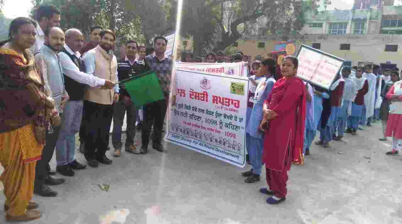 ਮਾਨਸਾ, 19 ਨਵੰਬਰ (ਬਲਜੀਤ ਸ਼ਰਮਾ) : ਬਾਲ ਅਧਿਕਾਰ ਸਪਤਾਹ ਦੌਰਾਨ ਮਨਾਏ ਜਾ ਰਹੇ ਪ੍ਰੋਗਰਾਮਾਂ ਦੀ ਲੜੀ ਤਹਿਤ ਜ਼ਿਲ੍ਹਾ ਬਾਲ ਸੁਰੱਖਿਆ ਅਤੇ ਚਾਈਲਡ ਲਾਈਨ ਮਾਨਸਾ ਵੱਲੋਂ ਅੱਜ ਸਰਕਾਰੀ ਸੀਨੀਅਰ ਸੈਕੰਡਰੀ ਸਕੂਲ (ਲੜਕੀਆਂ) ਵਿਖੇ ਬੱਚਿਆਂ ਦੇ ਅਧਿਕਾਰਾਂ ਨੂੰ ਸਮਰਪਿਤ ਇਕ ਰੈਲੀ ਦਾ ਆਯੋਜਨ ਕੀਤਾ ਗਿਆ ਜਿਸ ਨੂੰ ਸਹਾਇਕ ਕਮਿਸ਼ਨਰ (ਜ) ਸ੍ਰੀ ਨਵਦੀਪ ਕੁਮਾਰ ਦੁਆਰਾ ਹਰੀ ਝੰਡੀ ਦੇ ਕੇ ਰਵਾਨਾ ਕੀਤਾ ਗਿਆ।