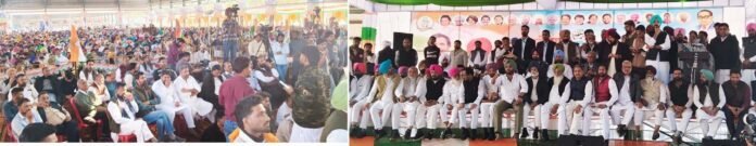 ਫੋਟੋ : ਮਾਨਸਾ : ਮਨਰੇਗਾ ਬਚਾਓ ਰੈਲੀ ਦੌਰਾਨ ਸਟੇਜ ਤੇ ਬਿਰਾਜਮਾਨ ਲੀਡਰਸ਼ਿੱਪ ਅਤੇ ਲੋਕਾਂ ਦਾ ਠਾਠਾਂ ਮਾਰਦਾ ਇਕੱਠ।