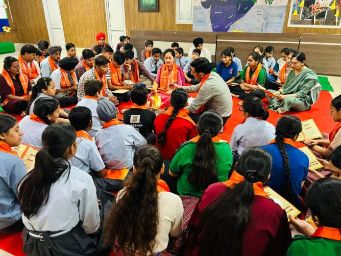 ਮਾਨਸਾ 02 ਅਪ੍ਰੈਲ,(ਸਾਰਾ ਯਹਾਂ) : ਡੀ ਏ ਵੀ ਪਬਲਿਕ ਸਕੂਲ ਮਾਨਸਾ ਵਿੱਚ ਨਵੇਂ ਸੈਸ਼ਨ ਦੇ ਪਹਿਲੇ ਦਿਨ ਨਵੇਂ ਵਿਦਿਆਰਥੀਆਂ ਦੇ ਸਵਾਗਤ ਲਈ ਹਵਨ ਕਰਵਾਇਆ ਗਿਆ। ਇਸ ਮੌਕੇ ‘ਤੇ ਸਕੂਲ ਵਿੱਚ ਵੇਦਿਕ ਮੰਤ੍ਰਾਂ ਨਾਲ ਹਵਨ ਕੀਤਾ ਗਿਆ।
