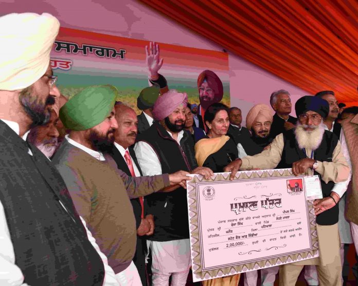 ਅੱਜ ਇੱਥੇ ਰਾਜ ਪੱਧਰੀ ਸਮਾਗਮ ਦੌਰਾਨ ਰਸਮੀ ਸ਼ੁਰੂਆਤ ਵਜੋਂ 25 ਕਿਸਾਨਾਂ ਨੂੰ ਕਰਜ਼ਾ ਰਾਹਤ ਸਰਟੀਫਿਕੇਟ ਸੌਂਪਣ ਮੌਕੇ ਮੁੱਖ ਮੰਤਰੀ ਨੇ ਕਿਹਾ ਕਿ ਇਹ ਰਾਸ਼ੀ ਸਿੱਧੀ ਵਪਾਰਕ ਬੈਂਕਾਂ ਦੇ ਸੀਮਾਂਤ ਕਿਸਾਨਾਂ ਦੇ ਖਾਤਿਆਂ ਵਿੱਚ ਪਾਈ ਜਾਵੇਗੀ ਅਤੇ ਇਸ ਪ੍ਰਕ੍ਰਿਆ ਨੂੰ ਭਲਕ ਤੱਕ ਮੁਕੰਮਲ ਕਰ ਲਿਆ ਜਾਵੇਗਾ। ਕੈਪਟਨ ਅਮਰਿੰਦਰ ਸਿੰਘ ਨੇ ਕਰਜ਼ਾ ਮੁਆਫੀ ਦੇ ਅਗਲੇ ਪੜਾਵਾਂ ਵਿੱਚ ਬੇਜ਼ਮੀਨੇ ਕਾਮਿਆਂ ਦਾ ਕਰਜ਼ਾ ਮੁਆਫ ਕਰਨ ਪ੍ਰਤੀ ਵੀ ਵਚਨਬੱਧਤਾ ਜ਼ਾਹਰ ਕੀਤੀ।