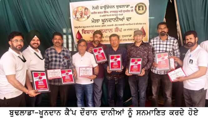 ਬੁਢਲਾਡਾ (ਸਾਰਾ ਯਹਾਂ/ਅਮਨ ਮਹਿਤਾ) ਇਲਾਕੇ ਦੀ ਸਮਾਜ ਸੇਵੀ ਸੰਸਥਾ ਨੇਕੀ ਫਾਉਂਡੇਸ਼ਨ ਵੱਲੋਂ ਸ਼ਹੀਦ ਭਗਤ ਸਿੰਘ, ਰਾਜਗੁਰੂ ਅਤੇ ਸੁਖਦੇਵ ਜੀ ਦੇ ਸ਼ਹੀਦੀ ਦਿਹਾੜੇ ਮੌਕੇ ਜ਼ਿਲ੍ਹੇ ਦੀਆਂ ਸਮੂਹ ਕਲੱਬਾਂ ਅਤੇ ਸੰਸਥਾਵਾਂ ਦੇ ਸਹਿਯੋਗ ਨਾਲ “ਮੇਲਾ ਖੂਨਦਾਨੀਆਂ ਦਾ” ਸਿਰਲੇਖ ਹੇਠ ਇੱਕ ਵਿਸ਼ਾਲ ਖੂਨਦਾਨ ਕੈੰਪ ਦਾ ਆਯੋਜਨ ਕੀਤਾ, ਜਿੱਥੇ 270 ਖੂਨਦਾਨੀਆਂ ਨੇ ਪਹੁੰਚਕੇ ਬੜੇ ਹੀ ਉਤਸ਼ਾਹ ਅਤੇ ਸ਼ਰਧਾ ਨਾਲ ਖੂਨਦਾਨ ਕੀਤਾ ਅਤੇ ਸ਼ਹੀਦਾਂ ਨੂੰ ਸ਼ਰਧਾਂਜਲੀ ਦਿੱਤੀ। ਕੈੰਪ ਦੀ ਵਿਸ਼ੇਸ਼ਤਾ ਇਹ ਰਹੀ ਕਿ ਮਰਦਾਂ ਦੇ ਨਾਲ ਨਾਲ ਔਰਤਾਂ ਨੇ ਵੀ ਵਧ ਚੜ੍ਹਕੇ ਹਿੱਸਾ ਲਿਆ। ਗੱਲਬਾਤ ਕਰਦਿਆਂ ਟੀਮ ਨੇਕੀ ਨੇ ਦੱਸਿਆ ਕਿ ਇਹ ਉਹਨਾਂ ਲਈ ਇੱਕ ਬਹੁਤ ਹੀ ਮਾਣ ਵਾਲੀ ਗੱਲ ਹੈ ਕਿ ਐਨੀ ਵੱਡੀ ਪੱਧਰ ਵਿੱਚ ਖੂਨਦਾਨੀਆਂ ਨੇ ਪਹੁੰਚਕੇ ਸ਼ਹੀਦਾਂ ਦੀ ਯਾਦ ਵਿੱਚ ਖੂਨਦਾਨ ਕੀਤਾ ਹੈ। ਹੁਣ ਤੱਕ ਨੇਕੀ ਫਾਉਂਡੇਸ਼ਨ 180 ਤੋਂ ਵੱਧ ਕੈੰਪ ਲਗਾਕੇ 22000 ਤੋਂ ਵੱਧ ਯੂਨਿਟ ਖੂਨਦਾਨ ਕਰਵਾ ਚੁੱਕੀ ਹੈ, ਜਿਸ ਸਦਕਾ ਸੰਸਥਾ ਨੂੰ ਪੰਜ ਰਾਜ ਪੁਰਸਕਾਰ ਵੀ ਪ੍ਰਾਪਤ ਹੋਏ ਹਨ। ਕੈੰਪ ਦੀ ਸ਼ੁਰੂਆਤ ਜੈਨ ਸਭਾ ਅਤੇ ਅਗਰਵਾਲ ਸਭਾ ਪ੍ਰਧਾਨ ਚਿਰੰਜੀ ਲਾਲ ਜੈਨ, ਪੰਚਾਇਤੀ ਗਊਸ਼ਾਲਾ ਪ੍ਰਧਾਨ ਸੁਭਾਸ਼ ਗੋਇਲ ਅਤੇ ਟੀਮ ਨੇਕੀ ਵੱਲੋਂ ਸ਼ਮਾਂ ਰੌਸ਼ਨ ਕਰਕੇ ਕੀਤੀ ਗਈ। ਬ੍ਰਹਮ ਕੁਮਾਰੀ ਆਸ਼ਰਮ ਤੋਂ ਦੀਦੀ ਅਰਚਨਾ ਦੇਵੀ ਨੇ ਸੰਸਥਾ ਦੀ ਸ਼ਲਾਘਾ ਕਰਦੇ ਹੋਏ ਕਿਹਾ ਕਿ ਜ਼ਿਲ੍ਹੇ ਲਈ ਇਹ ਮਾਣ ਵਾਲੀ ਗੱਲ ਹੈ ਕਿ ਨੇਕੀ ਫਾਉਂਡੇਸ਼ਨ ਜਿਹੀ ਸੰਸਥਾ ਨਾਲ ਲੋਕ ਇਸ ਪੱਧਰ ਉੱਤੇ ਜੁੜੇ ਹੋਏ ਹਨ ਕਿ ਉਹਨਾਂ ਦੀ ਇੱਕ ਆਵਾਜ਼ ਤੇ ਲੰਬੀਆਂ ਕਤਾਰਾਂ ਖ਼ੂਨਦਾਨੀਆਂ ਦੀਆਂ ਲੱਗ ਗਈਆਂ। ਇਸ ਮੌਕੇ ਵੱਖ -ਵੱਖ ਸਮਾਜਿਕ , ਧਾਰਮਿਕ ਸੰਸਥਾਵਾਂ ਦੇ ਆਗੂ ਅਤੇ ਰਾਜਨੀਤਕ ਆਗੂ ਵੀ ਖੂਨਦਾਨੀਆਂ ਨੂੰ ਵੱਡੀ ਗਿਣਤੀ ਵਿੱਚ ਅਸ਼ੀਰਵਾਦ ਦੇਣ ਪਹੁੰਚੇ। ਨੇਕੀ ਟੀਮ ਨੇ ਜਾਣਕਾਰੀ ਦਿੰਦਿਆ ਕਿਹਾ ਕਿ ਇਹ ਖੂਨ ਸਰਕਾਰੀ ਬਲੱਡ ਸੈਂਟਰ ਮਾਨਸਾ ਅਤੇ ਬਠਿੰਡਾ ਨੂੰ ਦਿੱਤਾ ਗਿਆ ਹੈ। ਹਰ ਖੂਨਦਾਨੀ ਨੂੰ ਇੱਕ ਸਨਮਾਨ ਚਿੰਨ੍ਹ ਅਤੇ ਸਰਟੀਫਿਕੇਟ ਭੇਂਟ ਕਰਕੇ ਸਨਮਾਨਿਤ ਕੀਤਾ ਗਿਆ। ਨੇਕੀ ਟੀਮ ਵੱਲੋਂ ਉਹਨਾਂ ਉੱਥੇ ਪਹੁੰਚੇ ਸਾਰੇ ਯੂਥ ਕਲੱਬਾਂ ਦਾ ਧੰਨਵਾਦ ਕੀਤਾ। ਇਸ ਮੌਕੇ ਜ਼ਿਲ੍ਹੇ ਦੀਆਂ ਵੱਖ ਵੱਖ ਸਰਕਾਰੀ , ਗੈਰ ਸਰਕਾਰੀ ਸੰਸਥਾਵਾਂ, ਜੈਨ ਸਭਾ, ਅਗਰਵਾਲ ਸਭਾ, ਡੇਰਾ ਸੱਚਾ ਸੌਦਾ ਕਮੇਟੀ ਬਲਾਕ ਬੁਢਲਾਡਾ, ਪੰਜਾਬ ਮਹਾਂਬੀਰ ਦਲ, ਕਾਰ ਡੀਲਰ ਐਸੋਸੀਏਸ਼ਨ, ਬ੍ਰਹਮ ਕੁਮਾਰੀ ਬੁਢਲਾਡਾ, ਸ਼ਹੀਦ ਜੋਗਿੰਦਰ ਸਿੰਘ ਸਪੋਰਟਸ ਕਲੱਬ ਸੈਦੇਵਾਲਾ, ਮਾਤਾ ਗੁਜਰੀ ਜੀ ਭਲਾਈ ਕੇਂਦਰ,ਸਟੂਡੈਂਟ ਕਲੱਬ ਕੁਲਰੀਆਂ, ਰਹਿਮਤ ਵੈਲਫੇਅਰ ਫਾਉਂਡੇਸ਼ਨ, ਆਟੋ ਰਿਕਸ਼ਾ ਯੂਨੀਅਨ ਬੁਢਲਾਡਾ, ਮੁਨੀਮ ਯੂਨੀਅਨ ਬੁਢਲਾਡਾ, ਸੰਤ ਬਾਬਾ ਕ੍ਰਿਸ਼ਨ ਦਾਸ ਵੈਲਫੇਅਰ ਸੋਸਾਇਟੀ ਕਲੀਪੁਰ, ਪੀਆਰਟੀਸੀ ਮੁਲਾਜ਼ਮ ਯੂਨੀਅਨ, ਨੌਜਵਾਨ ਏਕਤਾ ਕਲੱਬ ਨਰਿੰਦਰਪੁਰਾ, ਦਸਮੇਸ਼ ਲੋਕ ਸੇਵਾ ਗਰੁੱਪ ਝਨੀਰ, ਧੰਨ ਧੰਨ ਬਾਬਾ ਥੰਮਣ ਦਾਸ ਸਪੋਰਟਸ ਕਲੱਬ, ਮੈਡੀਕਲ ਪ੍ਰੈਕਟੀਸ਼ਨਰ ਐਸੋਸੀਏਸ਼ਨ ਪੰਜਾਬ, ਸ਼ਹੀਦ ਭਗਤ ਸਿੰਘ ਸਪੋਰਟਸ ਕਲੱਬ ਬਣਾਂਵਾਲਾ, ਭੀਮ ਰਾਓ ਅੰਬੇਦਕਰ ਸਪੋਰਟਸ ਐਂਡ ਵੈਲਫੇਅਰ ਕਲੱਬ ਖੀਵਾ ਦਿਆਲੂਵਾਲਾ, ਐਲਆਈਸੀ ਆਫ ਇੰਡੀਆ, ਰੈਡੀਮੇਡ ਗਾਰਮੈਂਟਸ ਸ਼ੂਜ ਐਂਡ ਜਨਰਲ ਸਟੋਰ ਐਸੋਸੀਏਸ਼ਨ ਬੁਢਲਾਡਾ, ਗੁਰਪ੍ਰੀਤ ਭੰਮੇ ਸੋਸ਼ਲ ਐਕਟੀਵਿਸਟ, ਸਪੋਰਟਸ ਕਰਾਟੇ ਐਸੋਸੀਏਸ਼ਨ ਮਾਨਸਾ, ਸ਼ਹੀਦ ਭਗਤ ਸਿੰਘ ਖੂਨਦਾਨ ਕਲੱਬ ਕੋਟਦੂਨਾ ਬਰਨਾਲਾ , ਧੰਨ ਧੰਨ ਥੰਮਨ ਸਿੰਘ ਸਪੋਰਟਸ ਕਲੱਬ ਬੱਛੋਆਣਾ, ਦ 