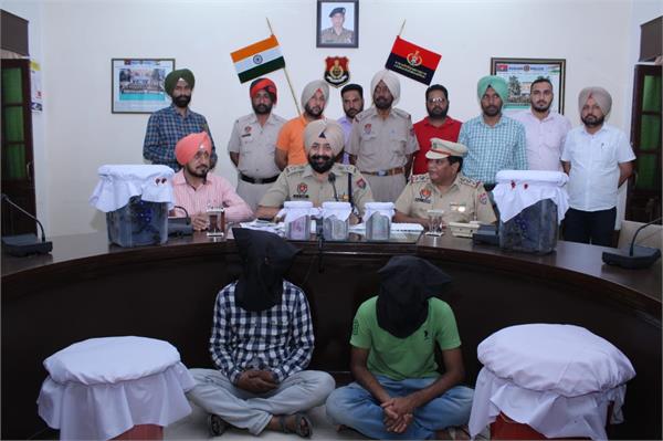 ਸੰਗਰੂਰ (ਸਾਰਾ ਯਾਹਾ) — ਸੰਗਰੂਰ ਦੇ ਐੱਸ. ਐੱਸ. ਪੀ. ਮਨਦੀਪ ਸਿੰਘ ਸਿੱਧੂ ਨੇ ਪ੍ਰੈਸ ਨੂੰ ਜਾਣਕਾਰੀ ਦਿੰਦੇ ਹੋਏ ਦੱਸਿਆ ਕਿ ਸੰਗਰੂਰ ਪੁਲਸ ਵੱਲੋਂ ਨਸ਼ਾ ਵਿਰੋਧੀ ਅਨਸਰਾਂ ਖਿਲਾਫ ਚਲਾਈ ਗਈ ਮੁਹਿੰਮ ਨੂੰ ਉਸ ਸਮੇਂ ਵੱਡੀ ਸਫਲਤਾ ਮਿਲੀ, ਜਦੋਂ ਜ਼ਿਲਾ ਸੰਗਰੂਰ ਵਿਖੇ ਹਰਿਆਣਾ ਰਾਜ ਤੋਂ ਪੰਜਾਬ ਵਿਖੇ ਸੁਲਫੇ ਦੀ ਸਪਲਾਈ ਕਰਨ ਵਾਲੇ ਸਪਲਾਇਰ ਸਮੇਤ 2 ਦੋਸ਼ੀ ਗ੍ਰਿਫਤਾਰ ਕੀਤੇ ਗਏ, ਜਿਨ੍ਹਾਂ ਕੋਲੋਂ ਛੋਟਾ ਹਾਥੀ, 04 ਕੁਇੰਟਲ ਭੰਗ (ਸੁਲਫਾ), 250 ਨਸ਼ੀਲੀਆਂ ਗੋਲੀਆਂ, ਸਿਵਮ ਬੱਟੀ ਨਾਮ ਦੀ ਆਯੂਰਵੈਦਿਕ ਦਵਾਈ ਪੈਕਟਾਂ ‘ਚ ਪੈਕ ਸਾਢੇ 7 ਕਿਲੋ ਸਮੇਤ ਬੈਗ ਅਤੇ 17 ਲੱਖ ਰੁਪਏ ਨਗਦੀ ਬਰਾਮਦ ਕੀਤੀ।