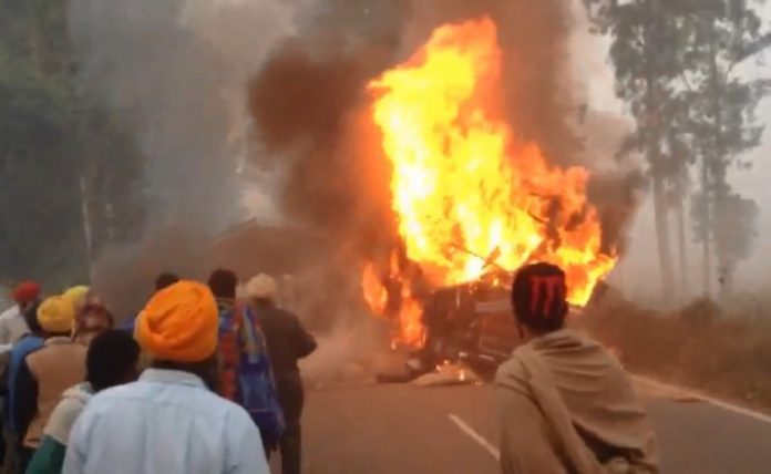 ਹਾਦਸੇ ਬਾਅਦ ਸੁਰਜੀਤ ਸਿੰਘ ਦੇ ਝੋਨੇ ਨਾਲ ਭਰੇ ਟਰੱਕ ਨੂੰ ਅੱਗ ਲੱਗ ਗਈ। ਵੇਖਦਿਆਂ ਹੀ ਵੇਖਦਿਆਂ ਅੱਗ ਭਾਂਬੜ ਬਣ ਉੱਠੀ ਤੇ ਅੱਗ ਨੇ ਸੁਰਜੀਤ ਸਿੰਘ ਨੂੰ ਟਰੱਕ ਵਿਚੋਂ ਬਾਹਰ ਨਿਕਲਣ ਦਾ ਵੀ ਮੌਕਾ ਨਹੀਂ ਦਿੱਤਾ। ਦੂਜੇ ਪਾਸੇ ਬੱਜਰੀ ਨਾਲ ਭਰੇ ਟਰੱਕ ਡਰਾਈਵਰ ਦੀ ਹਾਲਤ ਵੀ ਗੰਭੀਰ ਦੱਸੀ ਜਾ ਰਹੀ ਹੈ।