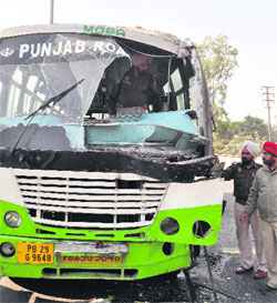 ਸ੍ਰੀ ਹਰਗੋਬਿੰਦਪੁਰ : ਸੋਮਵਾਰ ਸਵੇਰੇ ਮਡੋਲਾ ਅੱਡੇ ਨੇੜੇ ਮਾਤਾ ਵੈਸ਼ਨੋ ਦੇਵੀ ਦੀ ਯਾਤਰਾ ਤੋਂ ਆ ਰਹੀ ਬੱਸ ਦਰਖਤ ਨਾਲ ਟਕਰਾ ਕੇ ਹਾਦਸੇ ਦੀ ਸ਼ਿਕਾਰ ਹੋ ਗਈ। ਪ੍ਰਾਪਤ ਜਾਣਕਾਰੀ ਅਨੁਸਾਰ ਬੱਸ ਨੰ. ਡਬਲਯੂ. ਬੀ. -57 ਏ – 4003 ਜੋ ਜ਼ਿਲਾ ਬੋਕਾਰੋ, ਝਾਰਖੰਡ ਵਾਪਸ ਜਾ ਰਹੀ ਸੀ ਅਤੇ ਬੱਸ ਵਿਚ 60-65 ਦੇ ਕਰੀਬ ਸਵਾਰੀਆਂ ਸਨ, ਜਿਨ੍ਹਾਂ ਵਿਚੋਂ ਸਾਰੇ ਸਹੀ ਸਲਾਮਤ ਹਨ ਅਤੇ ਕਿਸੇ ਦਾ ਵੀ ਕੋਈ ਨੁਕਸਾਨ ਨਹੀਂ ਹੋਇਆ।