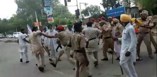 ਕਿਸਾਨ ਤੇ ਪੁਲਿਸ ਦਾ ਜ਼ਬਰਦਸਤ ਟਕਰਾਅ, ਬੇਵੱਸ ਹੋਈ ਪੁਲਿਸ
